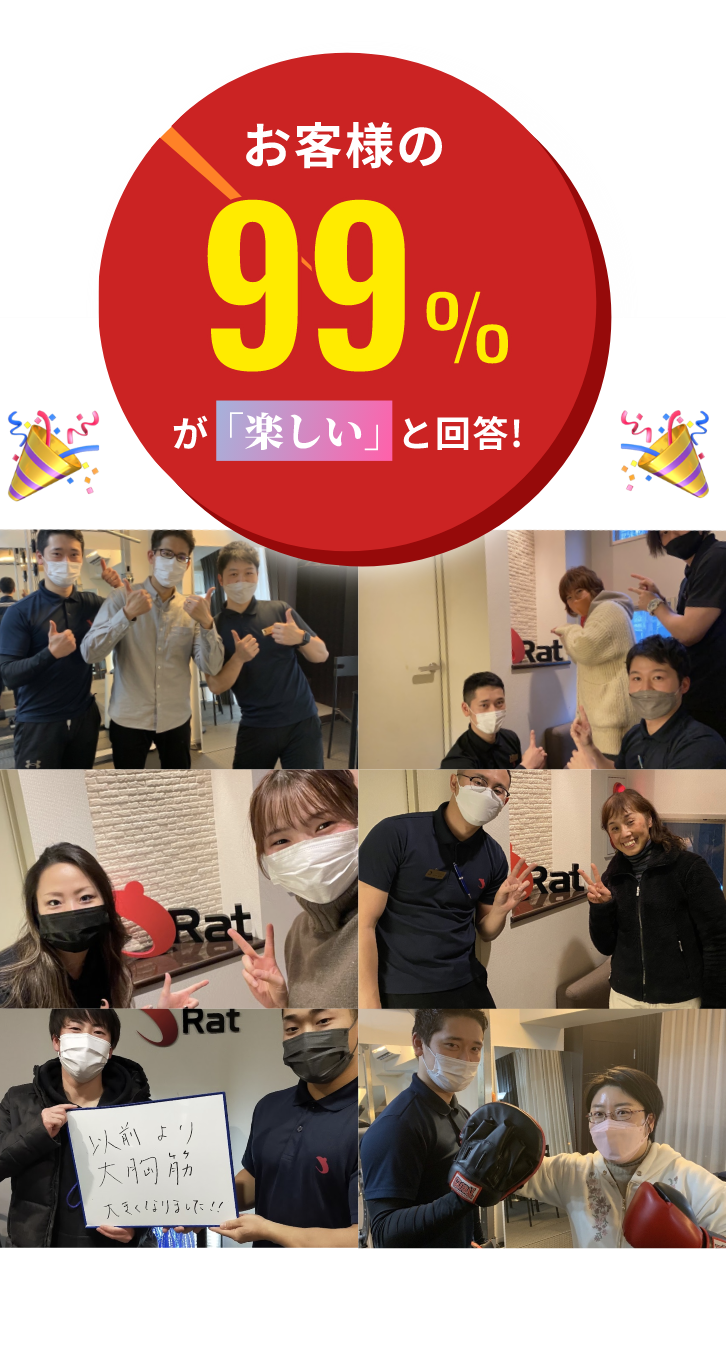 トレーニングや食事に関する内容以外でもパーソナルジムRatでは実際のお客様に喜ばれている多くの特徴がございます。
