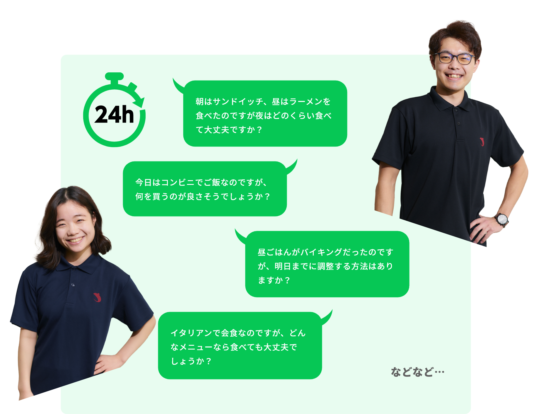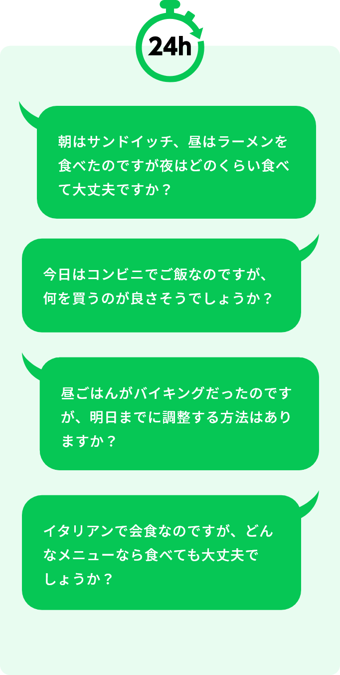 会食の前後や翌日などにLINEからご相談いただければ、より具体的な対策をお伝えすることが可能です。食事内容の例