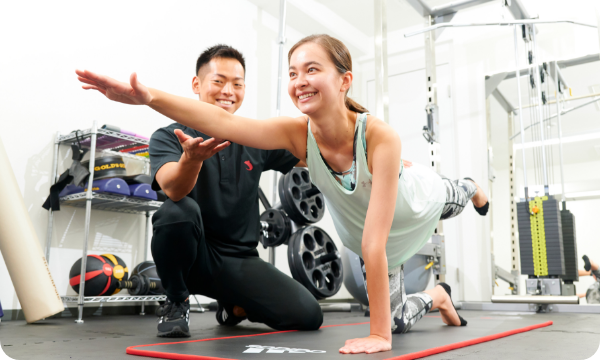 パーソナルジムRatでは卒業後のトレーニングで怪我をしないよう、姿勢改善もきっちり行います。姿勢が改善することで怪我のリスクを下げることはもちろん、ダイエット効果も高まり体系の維持がしやすくなります。