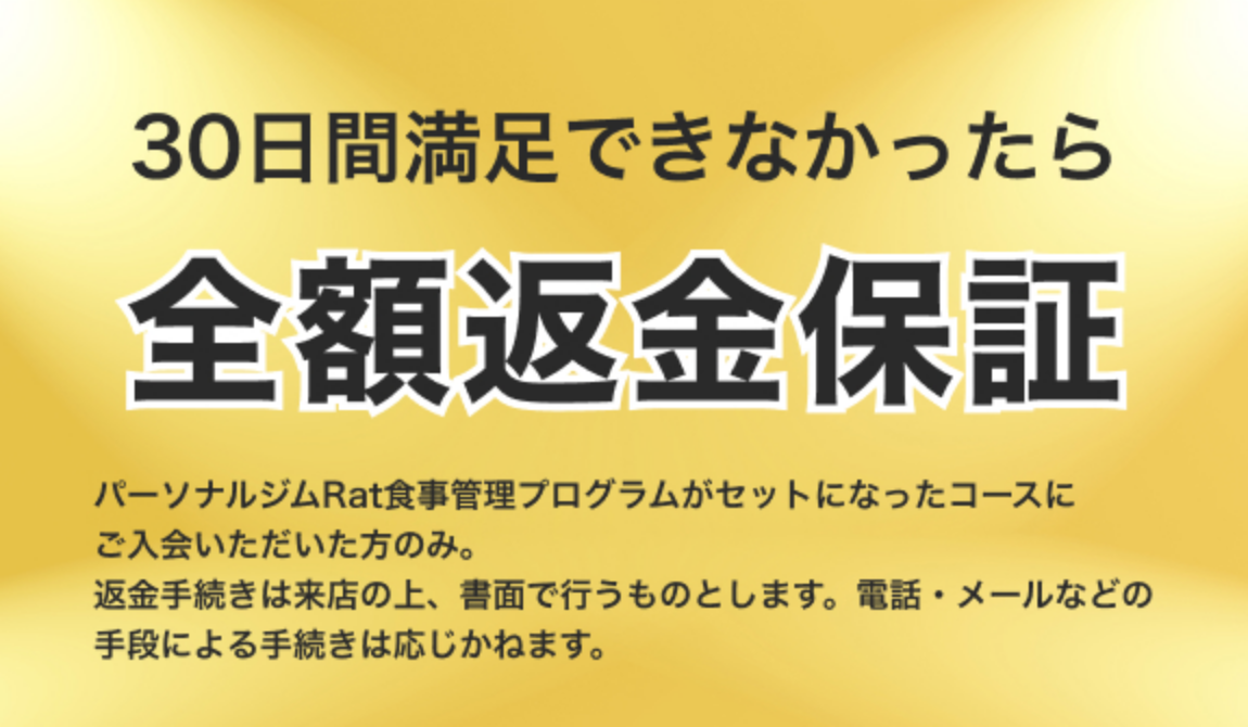 万が一、トレーニングや食事方法が合わない場合は30日間の全額返金保証制度があるため安心してご利用頂けます! まずは無料で見学やダイエットのアドバイスをさせて頂きますので、気軽に無料カウンセリングにお越し頂けますと嬉しく思います♪