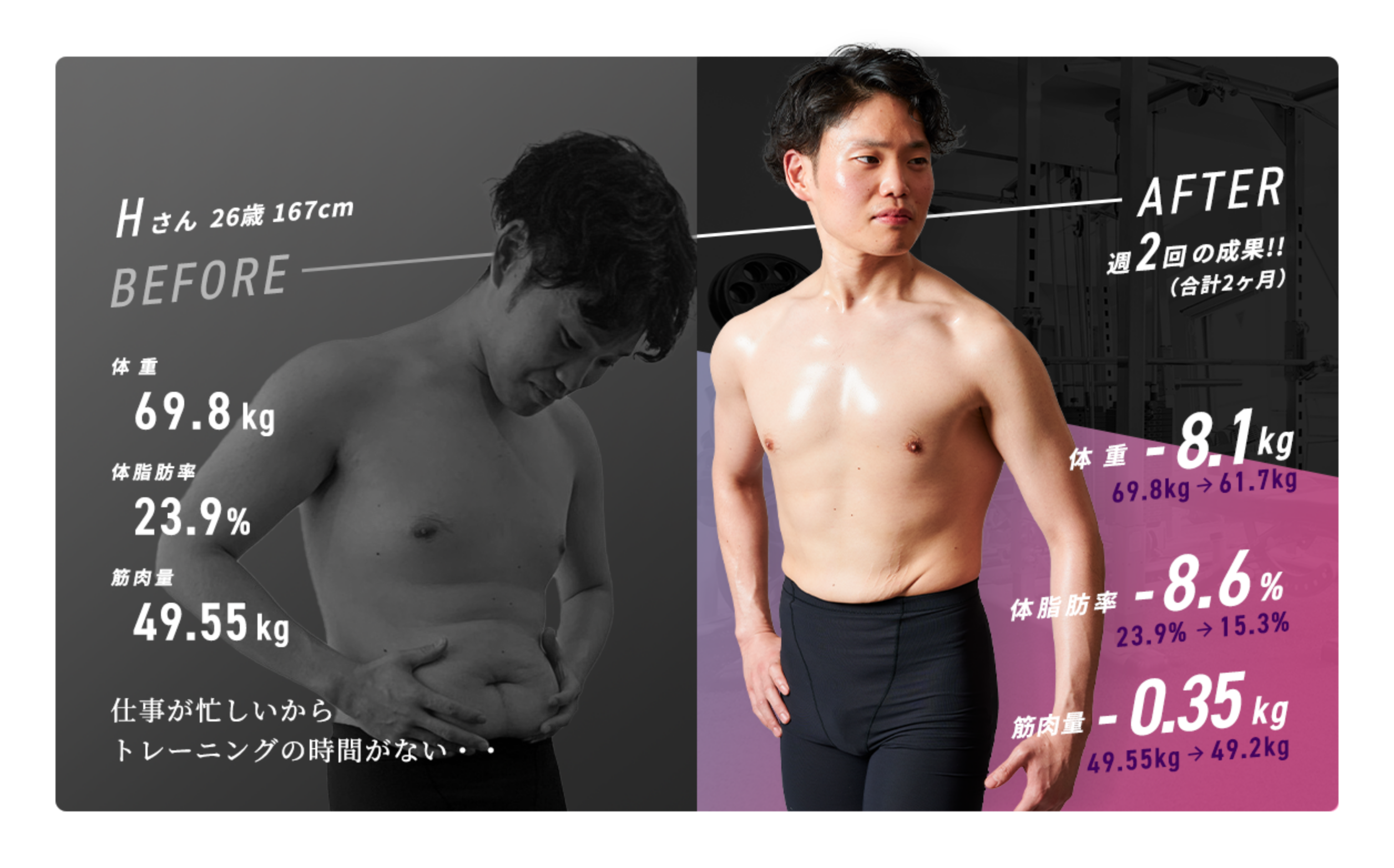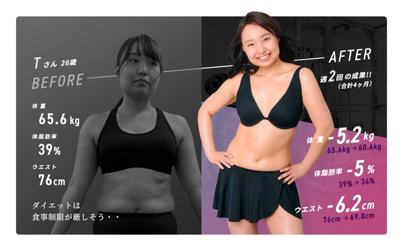 ARatのモニター様の結果をご紹介します。 実際には、年齢や体型によって異なりますので一度、無料相談(カウンセリング)へお越しいただければと思います。
