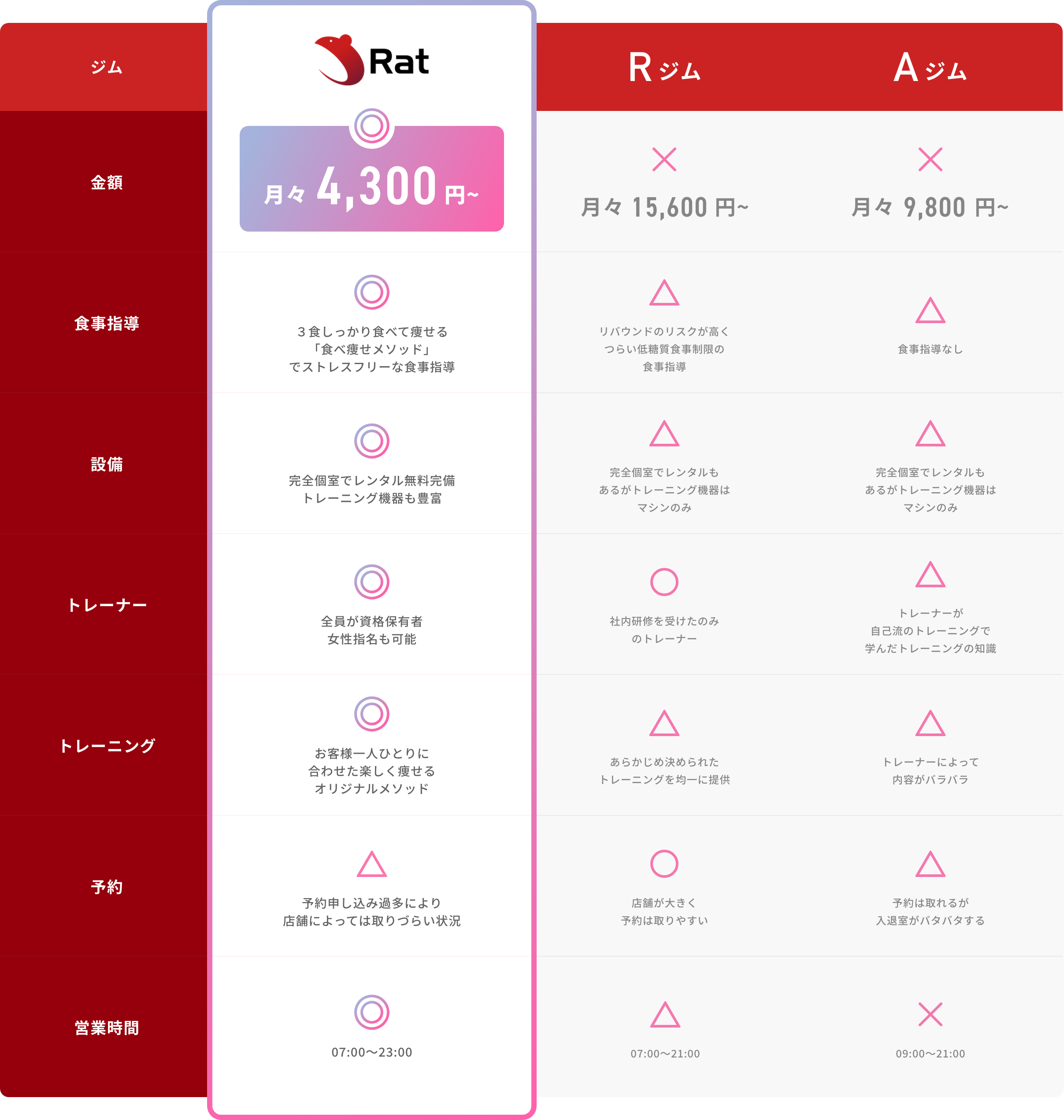 パーソナルジムRat|完全個室のパーソナルトレーニング・ダイエットジム